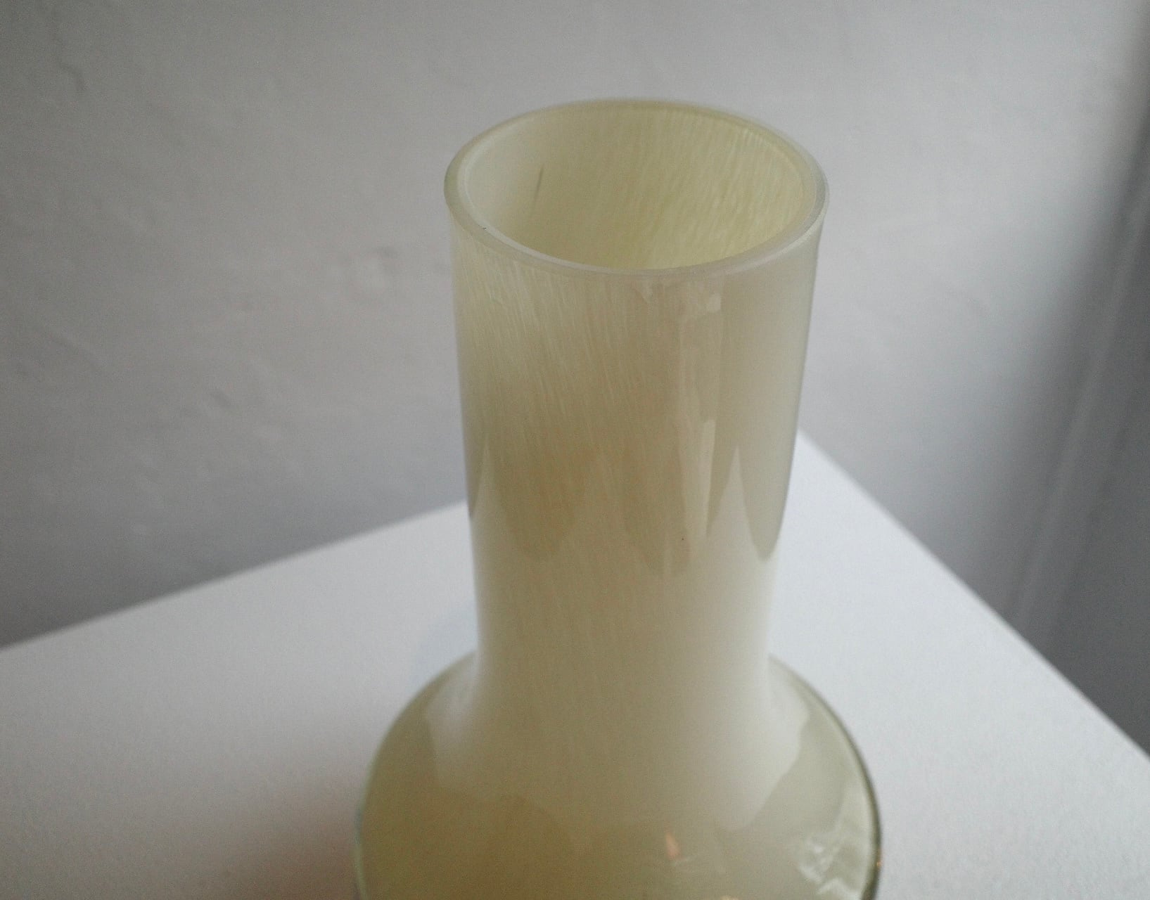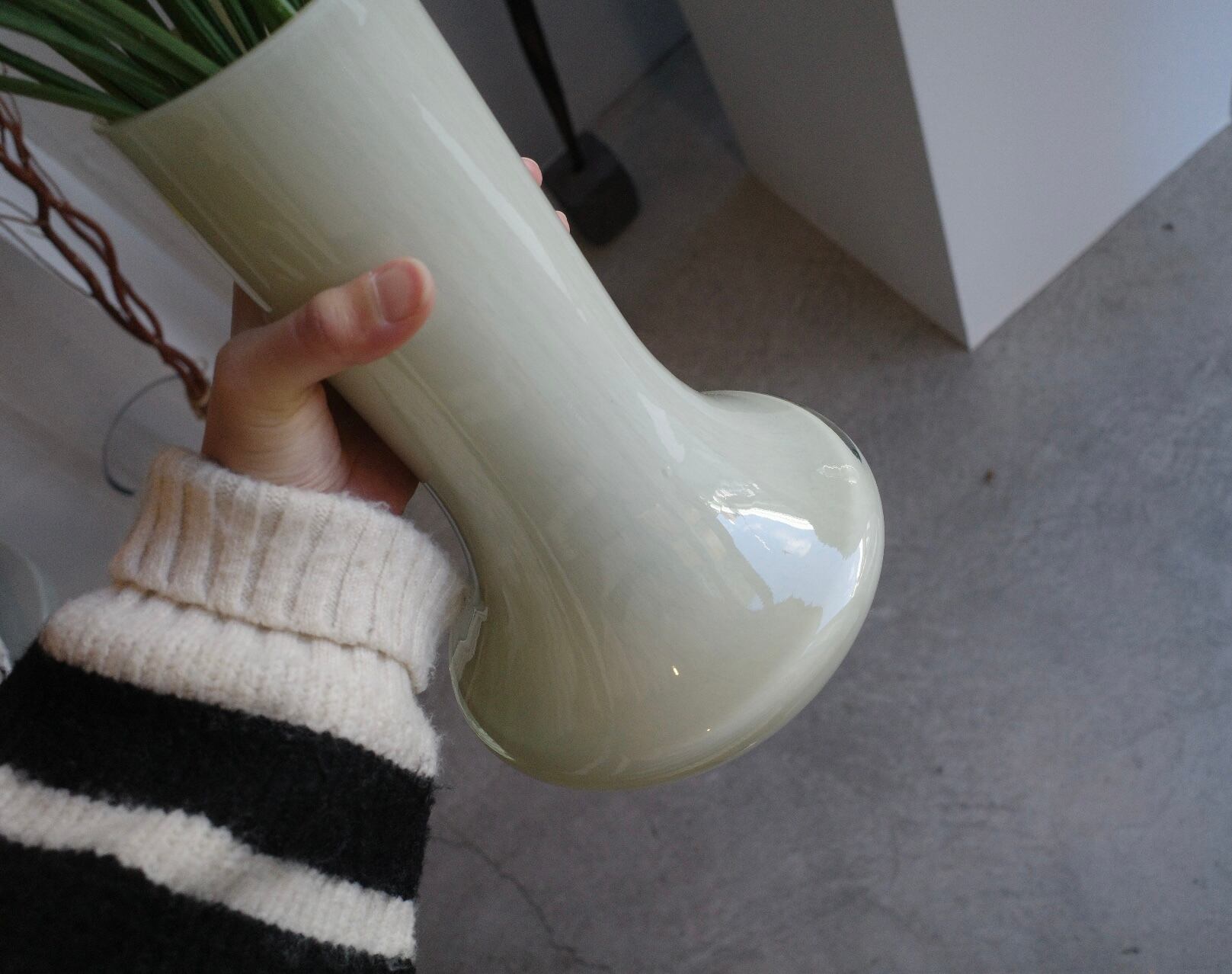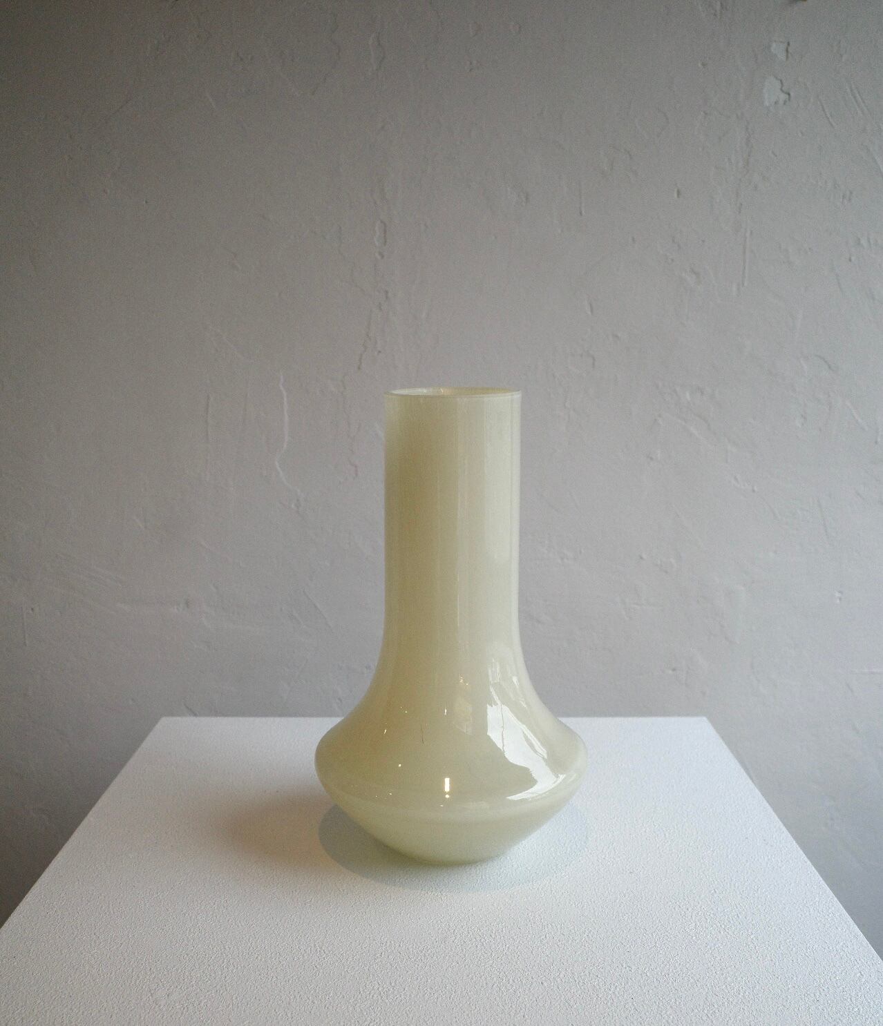 フォルムが特徴的なクリームカラーのガラスのベース。